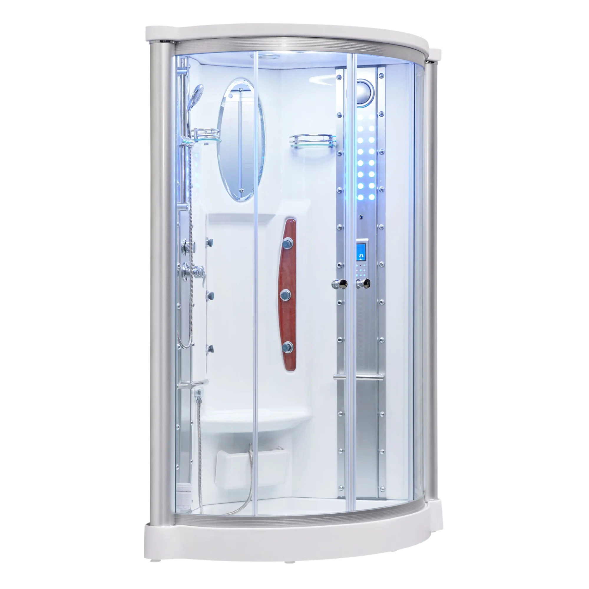 All steam showers carry a (7) seven-year structural warranty against manufacturer defects. The structural warranty protects the structure of the steam shower from peeling, fading, delaminating, or cracking. Structural components include acrylic panels, shower pan, ceiling, and glass panels. All steam shower parts carry a (1) one-year guarantee against defects.